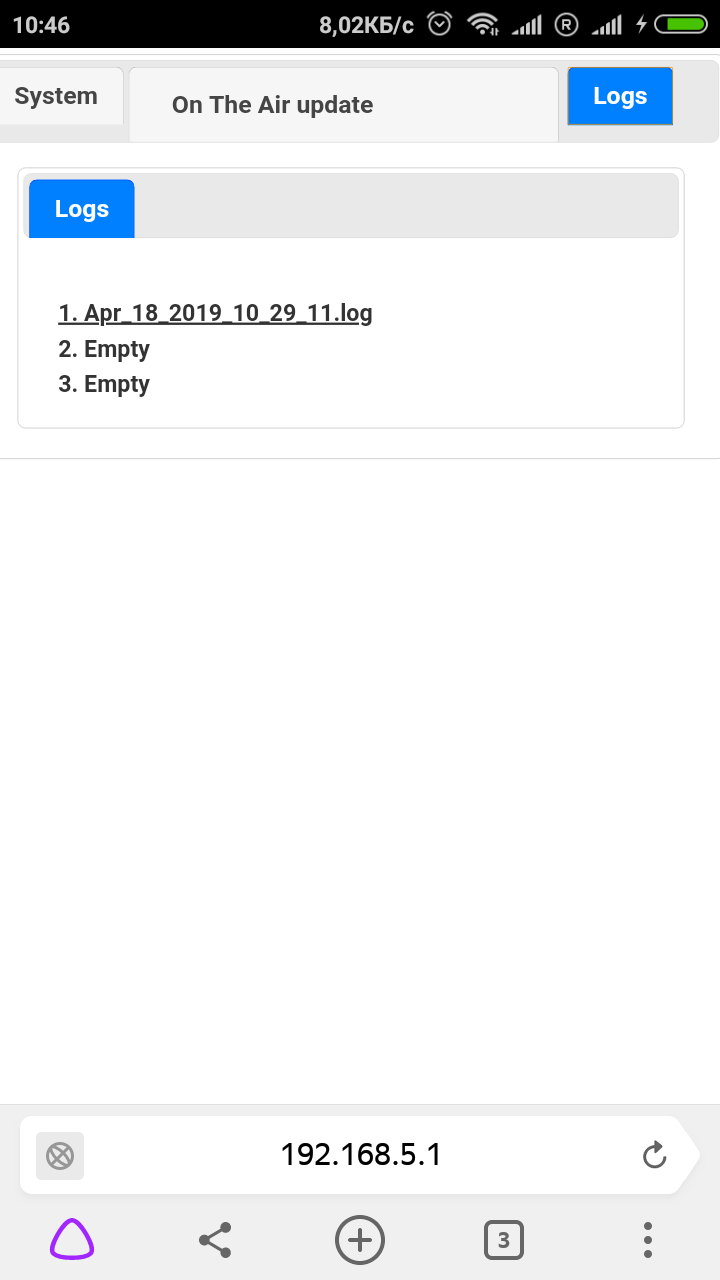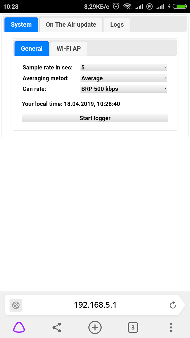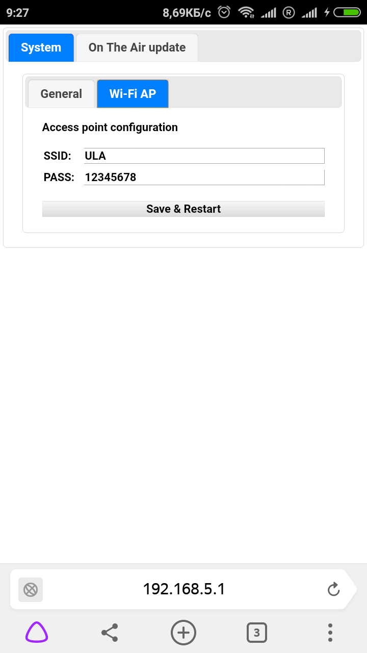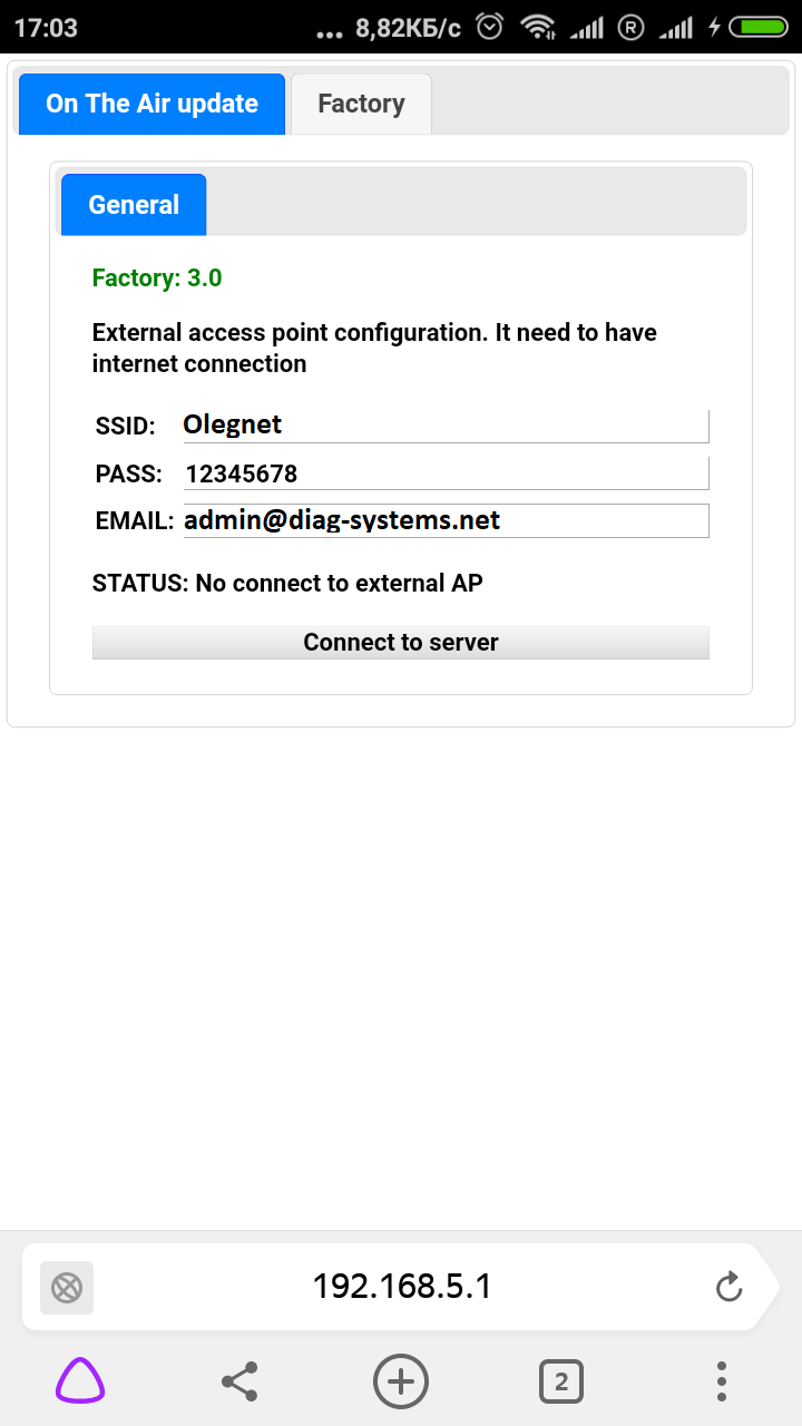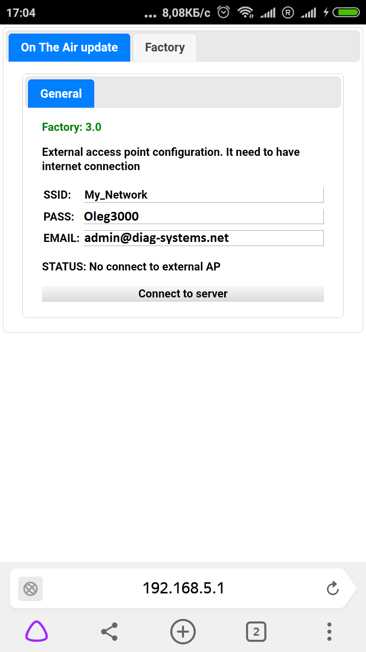4. In the phone's browser, enter the link to the device address 192.168.1.5, after which you will see the adapter settings: