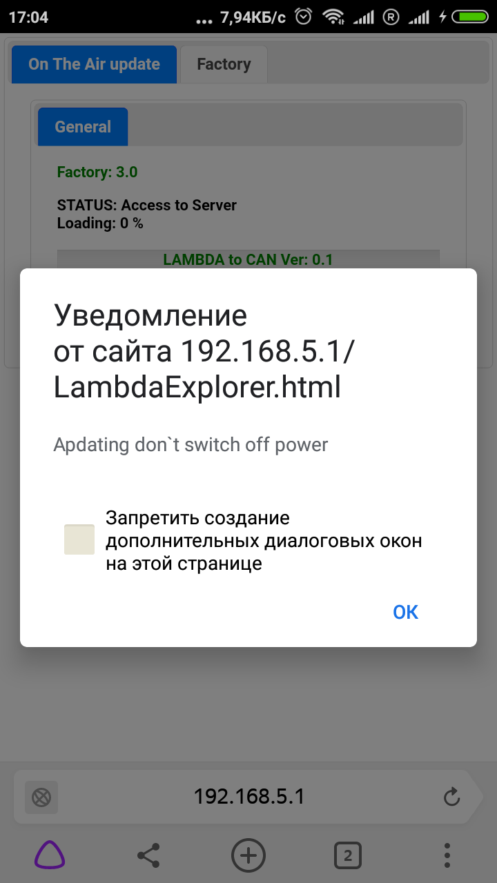 For example, I choose the first firmware, followed by a warning that the device can not be de-energized when updating the firmware and the process of loading the device